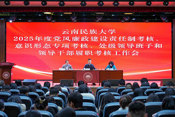12月18日,云南民族大学设计学院党委书记刘新库、就业创业指导服务中心副主任(副院长)谢李鸿嘉等相关领导组成检查考核工作组到民大附中开展2025年度党风廉政建设责任制考核、意识形态专项考核、处级领导班子和领导干部履职考核工作会,附中领导班子成员、全体教职工在学生活动中心参加会议。