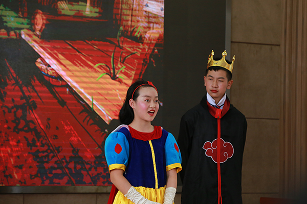课本剧比赛将课文中看不见、摸不着的文学艺术,形象地展现在舞台上。《木兰诗》《最后一课》《黑暗中的微光》《红岩》等课本剧,讲述了一个个爱国故事,塑造了一系列天下兴亡、匹夫有责的人物形象;《三打白骨精》《白雪公主》《伟大的悲剧》《人间温情》等课本剧充分展现了学生对于文本的深层次解读和再创造能力。