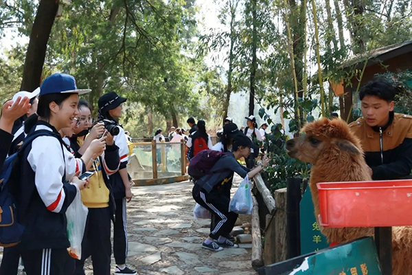 走进自然,放飞青春,是每个学子的梦想。昆明野生动物园迎来民大附中高中部千余名学生春游团体,同学们兴高采烈在动物园里开展寻春、踏春的快乐之旅,园内处处洋溢着学生们的欢呼雀跃声,更显一派生机。