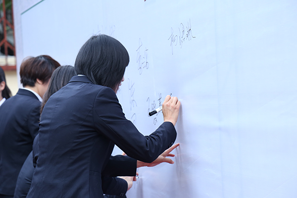 活动现场,初一、初二、高一的同学们分别朗读了《爱莲说》、《诫子书》和《劝学》章节。随后,老师们和同学们纷纷在签名处写上自己的名字,共同加入到“阅读者”的行列,让民附校园书香袭人,让广大师生在“悦读”中拓展视野。
