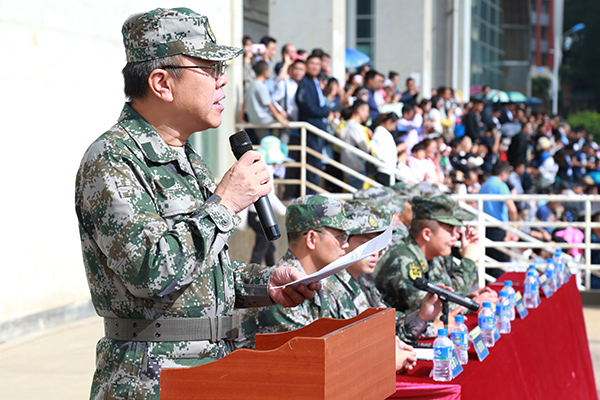 李兴富校长代表学校向关心支持我校国防教育和军训工作的云南省武警总队第一机动支队官兵表示衷心的感谢,向组织、参加此次军训的相关职能部门、带队教师致以亲切的问候,向圆满完成军训任务的全体同学表示热烈的祝贺。他指出,军训期间同学们的精神境界得到提升、身心得到磨炼,集体观念、时间观念、荣誉观念得到增强。