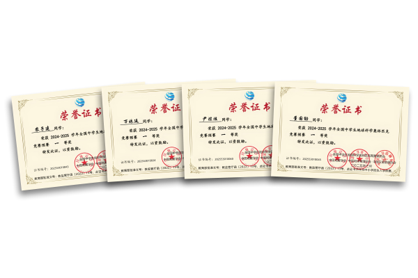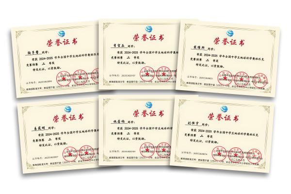 三、2024—2025学年全国中学生地球科学奥林匹克竞赛(预赛):国家级一等奖:农子建 董国劭 尹煜炫 万姝廷;国家级二等奖:施若楠 陶子馨 易筱明 戴维斯 李宣函 刘恒宇;国家级三等奖:陈思宏 寸云 方思化 何恩旭 马舒航 冉思行 任羿 石玉娇 苏恒锐 王姿瑾 杨雯琪 朱宸钰