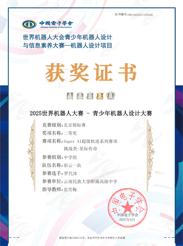 七、2025年世界机器人大赛北京锦标赛:二等奖 罗代冰