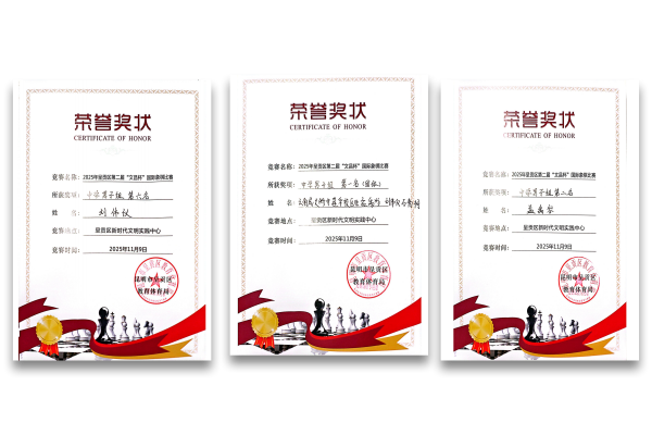 十五、2025年呈贡区第二届“文昌杯”国际象棋比赛:中学男子组(团体)第一名:孟禹岑、刘伟仪、石杨桐;中学男子组:孟禹岑第二名、刘伟仪第六名