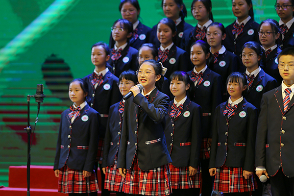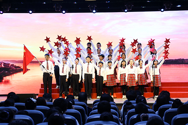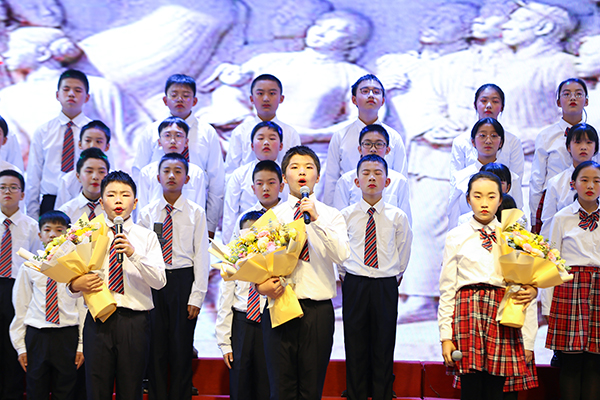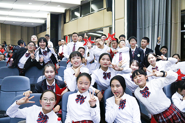 音乐响起,来自初2020级各班带来了《少年中国说》《山高路远》《满江红》《短歌行》《木兰辞》《蜀道难》等经典朗诵作品,博得观众热烈掌声。