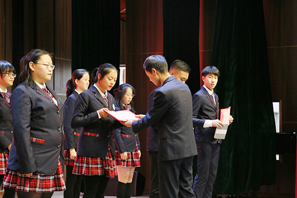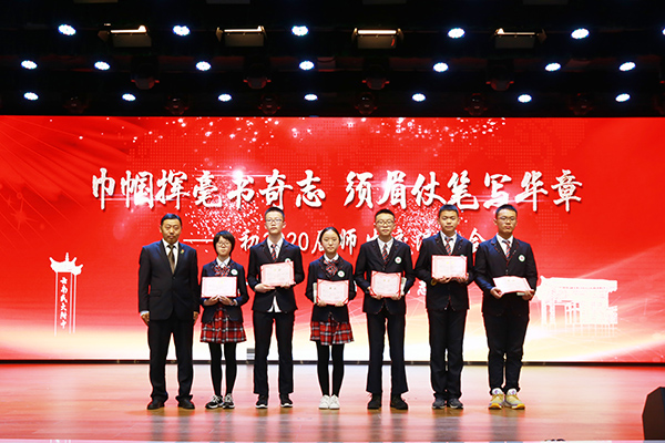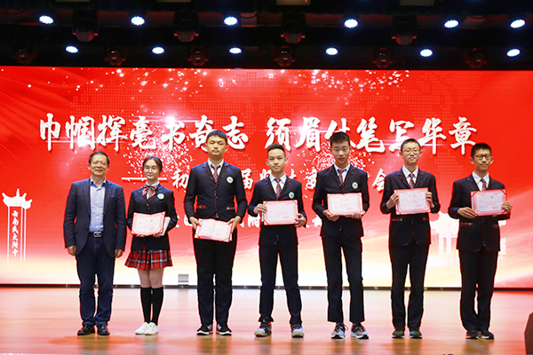 会上,对荣获“爱校荣校之星”“智慧之星”“文明之星”“文体之星”“学习之星”的学生进行了表彰,获奖学生代表还发表了获奖感言、带来了精彩的节目,初三教师合唱歌曲《我爱你中国》,全体师生最后齐唱《向前冲》,将大会带入高潮。
