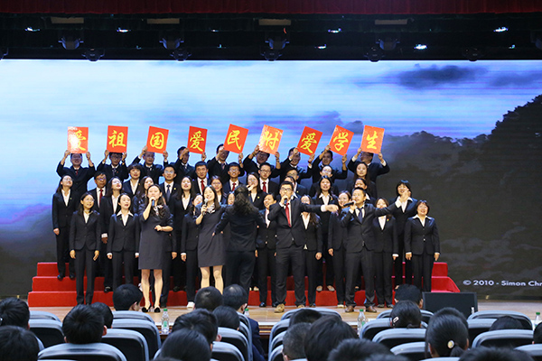 爱国心,民附情,凌云志。10月15日,云南民大附中初2020届师生交流大会在学生活动中心举行。校长李兴富、副校长杨珺琳、马恩云、范贤凯以及相关处室、年级负责人和全体初三师生参加大会。