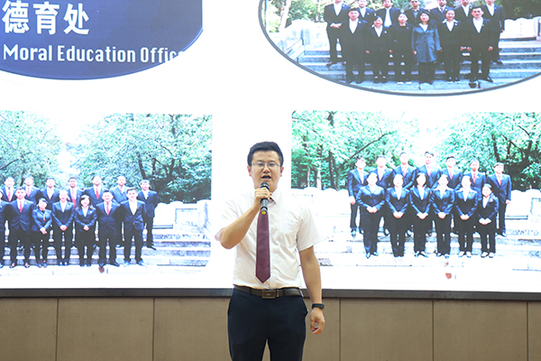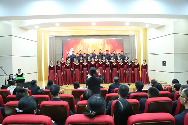 在比赛开始前,学校教师合唱团共同演唱歌曲《母亲的微笑》、《我和我的祖国》,精彩的演出获得台下老师们的热烈掌声,也充分展示了民附人奋发图强、斗志昂扬的精神风貌,表达了民附人对祖国的热爱。