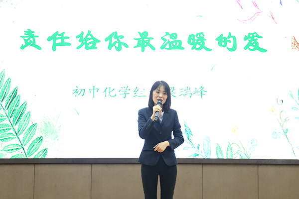 经过初赛,共有10位老师进入决赛。现场,老师们述说着自己的教育故事,也挖掘了身边的育人事迹。其中,侯贵胜老师《我的教师情缘》、蒋翠芳老师《长大后,我就成了你》、梁瑞峰老师《责任给你最温暖的爱》、胡颖老师《用爱心,铺就成长之路》、胡琴老师《做一个有职业幸福感的教师》的深情演讲诠释了民附教师用爱心育人的真实感人故事。