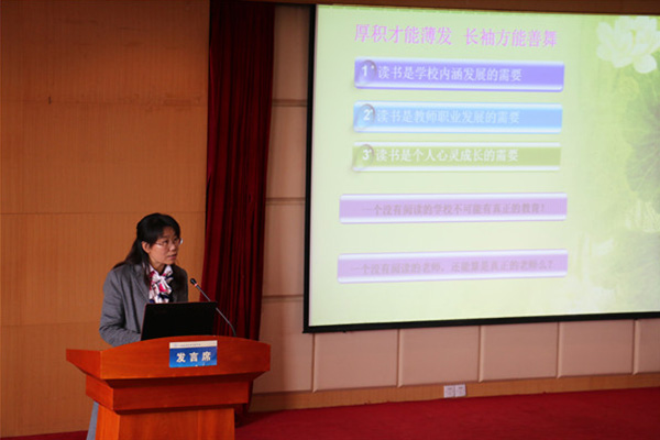 我校教职工代表在启动仪式上还以灵活、多样的形式,分别推荐好书与日常读书心得,发起读书倡议,以此带领大家一起参与阅读,多读书、读好书、书读好。