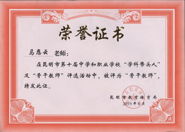 我校马恩云、周姝老师荣获昆明市“骨干教师”称号