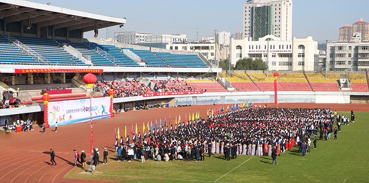 11月12日上午,沐着初冬的暖阳,迎着飞舞的彩旗,云南民大附中2020年体育艺术节之冬季田径运动会在昆明市体育场隆重开幕。