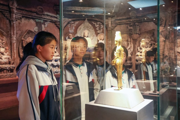 莲华校区组织学生前往云南省博物馆,开展以“行走云博承文脉·青春笃行筑同心”为主题的教育活动。作为“行走的思政课”创新实践,本次活动通过实地参观,让学生近距离接触云南丰富的历史文物与文化遗产。从远古文明直至云南和平解放的历史发展进程,云南省博以文物为引领,全面系统地展示了云南各族人民在红土高原创造的厚重历史和辉煌文明。同学们驻足于战国青铜牛虎铜案、西汉鎏金骑士四牛铜贮贝器、宋大理国银背光金阿嵯耶观音立像、元黄公望《剡溪访戴图轴》、明金镶红蓝宝石冠、清康熙青花人物凤尾尊等珍贵文物前,了解每一件展品背后的故事,感受云南多元一体的文化脉络。