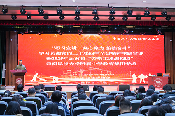 12月1日,云南民大附中教育集团全体教职工齐聚一堂,召开主题会议,深入学习贯彻党的二十届四中全会精神,大力弘扬“劳模精神、劳动精神、工匠精神”,并开展劳模精神宣讲活动。