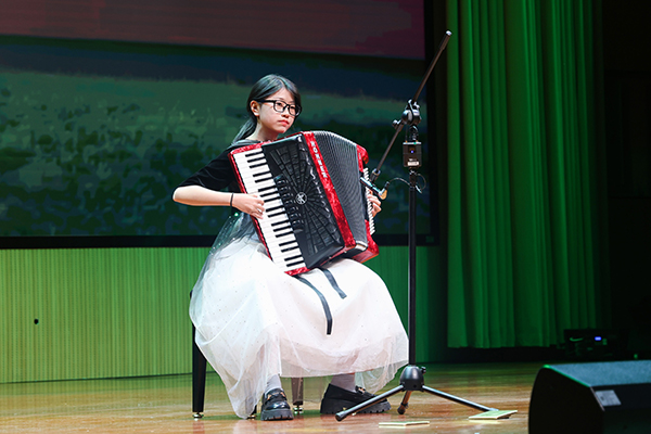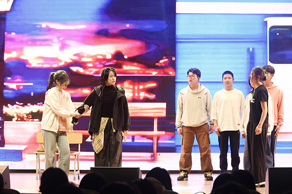 在莲华校区的展演现场,学子们各展其才,将青春的活力与创意挥洒得淋漓尽致。架子鼓表演鼓点铿锵,在动感旋律中迸发蓬勃朝气,每一次敲击都叩击着观众的心跳;舞蹈节目中利落的舞步、默契的配合,勾勒出独有的灵动与张扬;女声合唱温柔治愈,和声里藏着细腻的情感;长笛演奏悠扬婉转,旋律如月光般倾泻;朗诵节目字字铿锵,以赤诚之声传递家国情怀……古筝独奏清越悠扬,多人小品妙趣横生,钢琴独奏典雅婉转,弹唱表演温情满溢,各类艺演轮番登场,学子们或倾情抒怀,或奇思迭出,或默契联袂,在舞台上展现出超越年龄的专业与从容。