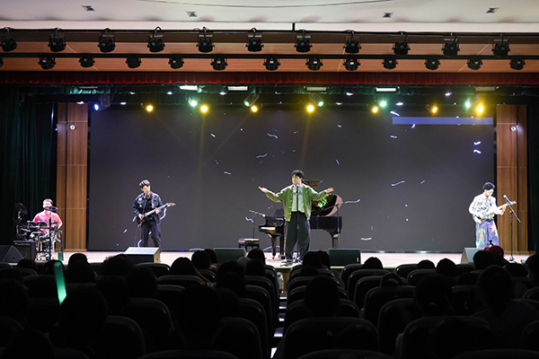 呈贡校区的展演则更添民族风韵与多元创意。醒狮表演率先登场,腾挪跳跃间,尽显传统文化的独特魅力,也拉开了这场才艺盛宴的序幕;合唱歌声清冽婉转,温情藏于每一段旋律中,为暖冬的校园添上了一抹治愈底色;弹唱表演深情款款,旋律中勾起青春共鸣;舞蹈各具特色,古典舞的婉约、民族舞的灵动,在舞台上交织成最美的风景线;小提琴、手风琴、钢琴联奏、民乐联奏等节目,让中西乐器碰撞出奇妙的音乐火花;更有轮滑、拉丁、K-pop舞等表演,将运动与艺术完美融合,展现出学子们的蓬勃朝气。展演尾声,《开一朵莲花》的合唱缓缓响起,歌声中承载着民附学子的集体向心力与深厚同窗情,为本次达人秀活动奏响了完美终章。