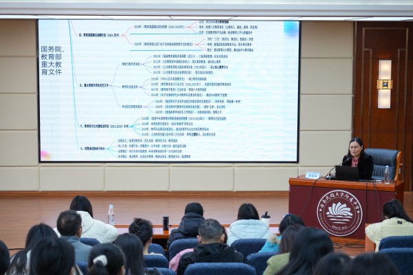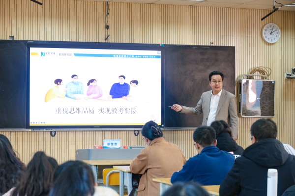 语文学科发展中心主任雷萍围绕语文备考日常工作,结合教学案例与系统策略展开分享。雷老师强调,要以学生为本,用团队精细化协作培养学生的语文素养。她指出,在信息冗余的时代,清晰就是力量,教师应以从容状态引领学生前行,实现语文学科的育人价值。