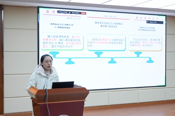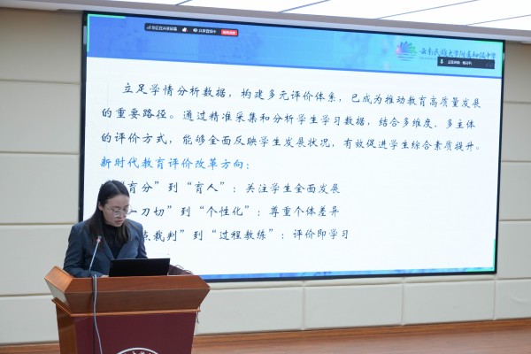 杨丹丹老师以《立足学情分析数据,构建多元评价体系》为中心,强调以大数据为支撑,通过课堂互动、作业、测试等多维度采集学情数据,精准诊断学生优势与薄弱点,建立评价维度,实现从“育分”到“育人”的转变,构建起“数据驱动—多元评价—精准育人”的闭环。