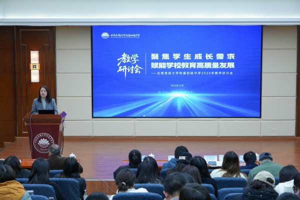 12月29日,云南民大附属初中在莲华校区至真楼举行以“聚焦学生成长需求 赋能学校教育高质量发展”为主题的教学研讨会。附属初中全体教师齐聚现场参会,罗免中学部分教师受邀现场聆听交流,共话教学创新与育人实效。