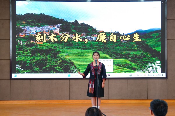 参赛选手同台竞技、各展所长,舞台呈现精彩纷呈。选手们充分利用图片、PPT、音频及视频等辅助工具,将叙事与视听艺术巧妙结合,增强了演讲的感染力与代入感。身着民族服饰的选手、配有动人旋律的讲述,让整场比赛不仅是一场语言的盛宴,更成为一堂生动的“大思政课”和一次深刻的民族团结进步教育实践。