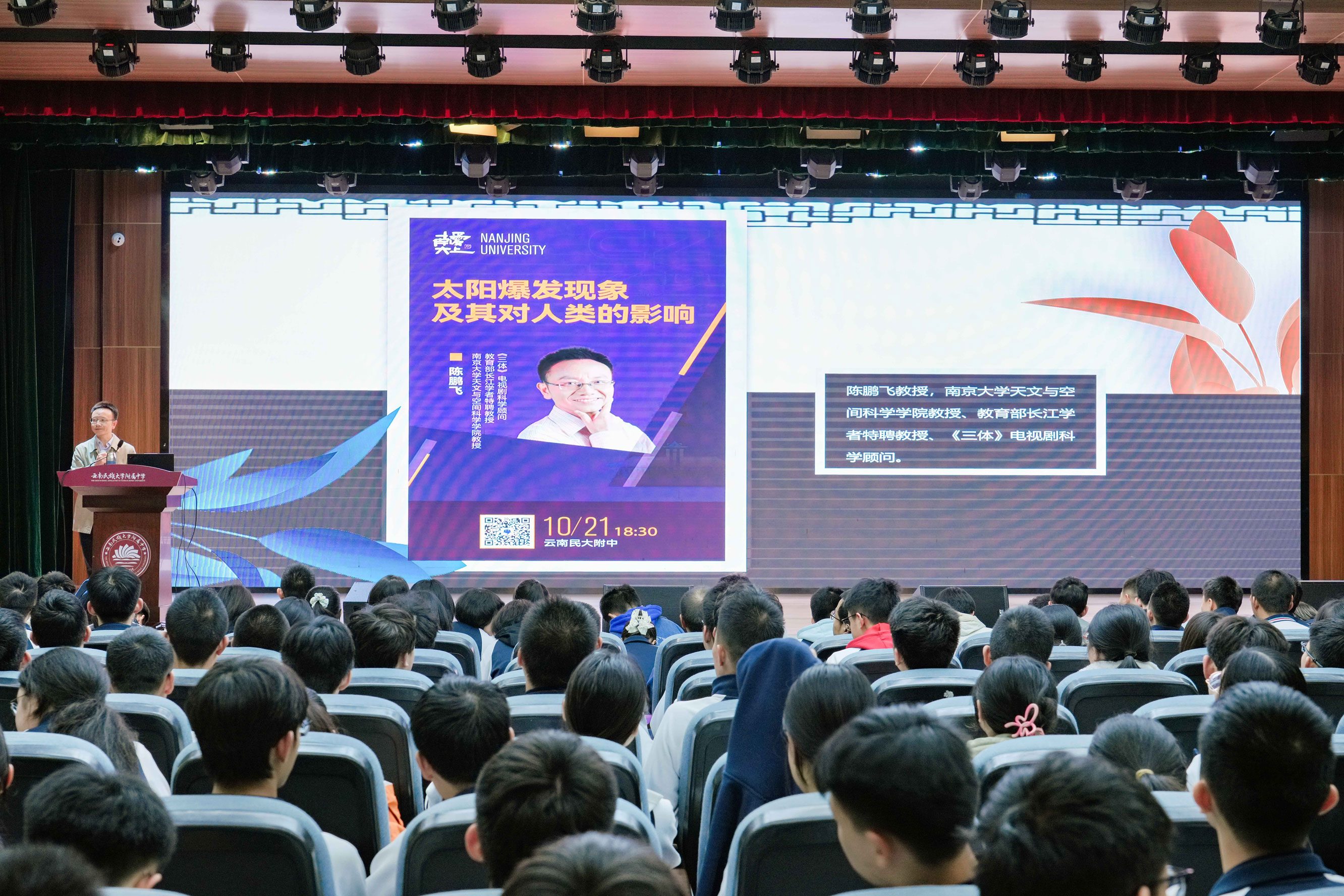 10月21日的云南民族大学附属中学教育集团,一场关于宇宙与人生的思想盛宴正悄然绽放。南京大学陈鹏飞教授携星河浩瀚而来,徐慨教授怀人生智慧而至,两位学者以“科学探路”与“选择导航”为经纬,在少年心中编织出探索未知、规划未来的成长图谱,让“民族情怀与科学精神交融”...