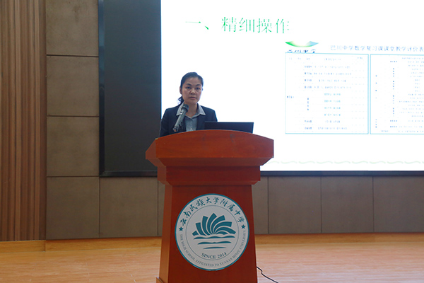 “由于知识更新速度的加快,教师如果仅仅局限于自己学生时代的‘老本’,必然会落后与淘汰。而一个不能立足于学科前沿知识的教师,对于学科教学的理解必然会肤浅。”张老师作《精细、突破、改变,—直在路上》分享交流时说。