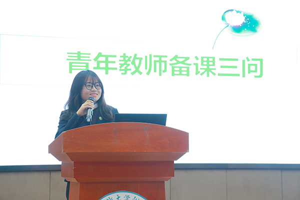 “备课是上课的前提,备好课是上好课的先决条件。备课要备大纲,备教材,备学生,备方法。这“四备”之间应有机地联系起来,不能互相脱节,缺了其中任何一个,都难以取得良好的教学效果。”聂老师作《青年教师备课三问:从英语学科角度浅谈备课与提高课堂效率的关系》专题交流时说。