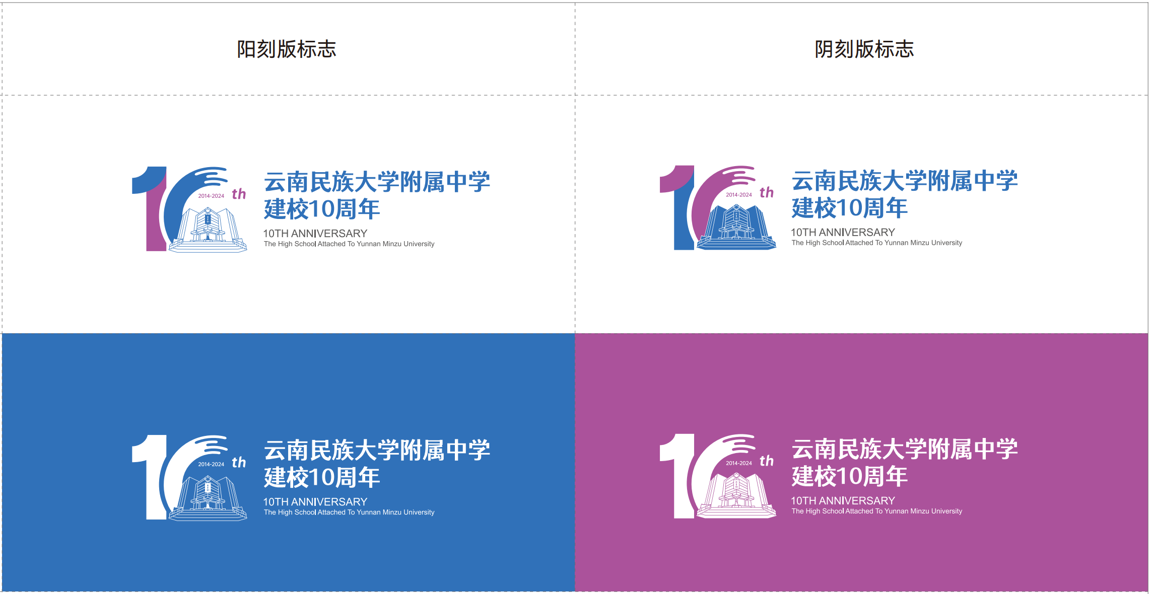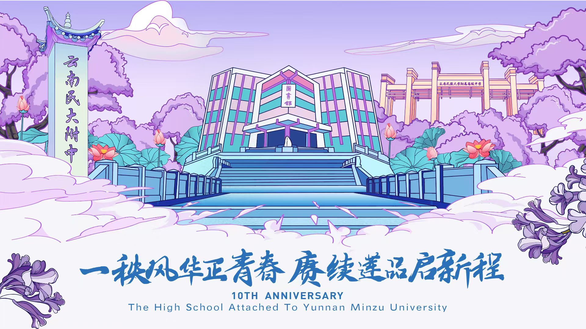 标识由数字10和学校莲华校区标志性建筑物图书馆为主体图形,并辅以年份2014—2024,象征着民大附中秉持立德树人初心使命,深耕基础教育的发展足迹,体现“一秩风华正青春,赓续莲品启新程”的建校十周年主题。