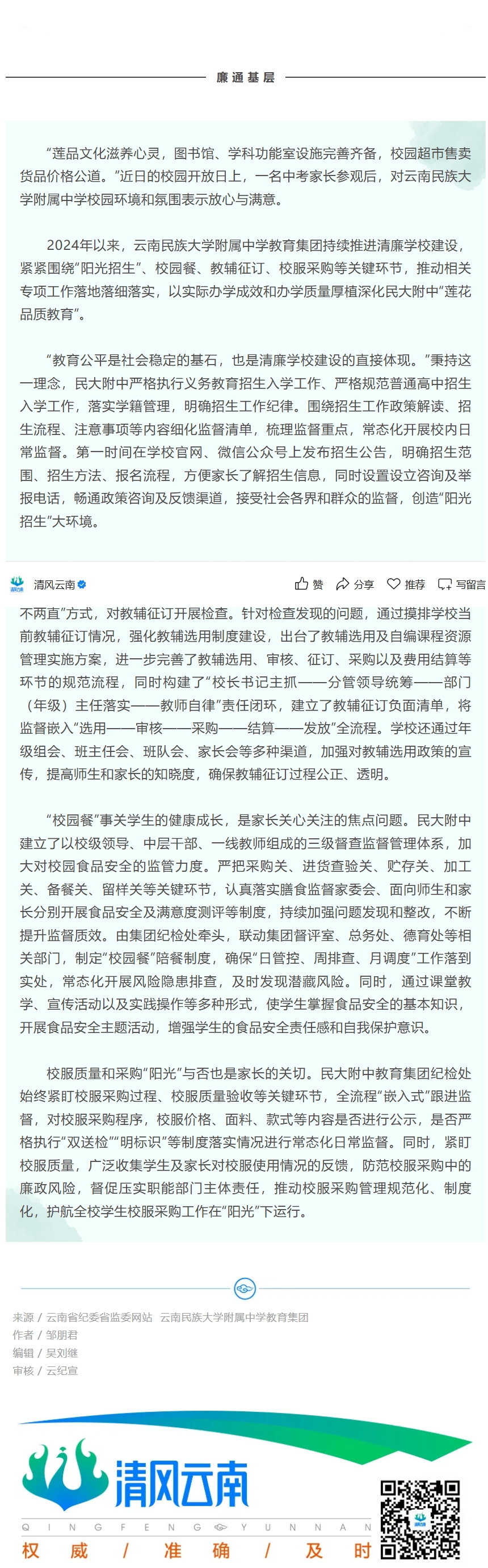 清风云南:坚持“莲花品质教育” 云南民族大学附属中学教育集团擦亮校园清廉底色