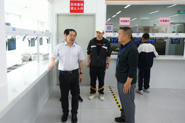 校领导深入食堂各功能区域,仔细查看餐台升级成效、通风系统改造质量、消防设施更新情况;同时围绕食品安全核心,详细询问食材采购溯源流程、餐具消毒标准及食品安全管理制度执行情况。杨庚西书记强调,要守住食品安全底线,务必以“师生满意”为目标,优化用餐体验,让家长放心、学生舒心。