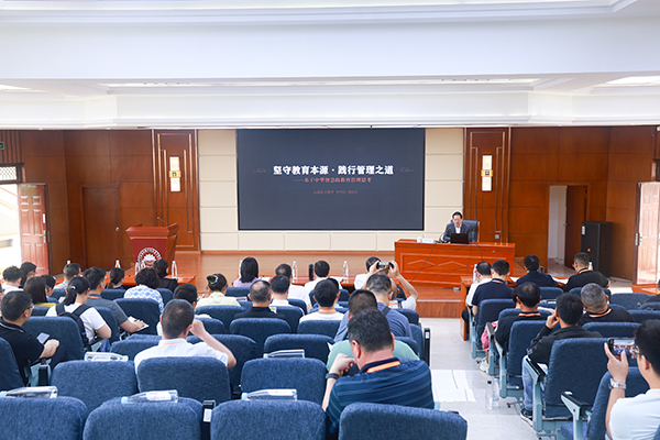 在主题讲座环节,云南民大附中教育集团总校校长、附属高中校长李兴富作题为《坚守教育本源 践行管理之道》的专题讲座。李校长结合自身丰富的办学经验和管理智慧,系统阐述了其治校理政的核心方略。他强调校领导必须以身作则、率先垂范;勤于学习、善于思考。通过建立透明、公正的管理机制来守护和提升领导班子的公信力。他深刻阐明管理必须遵循教育本真和发展规律,实现办学目标与教育规律的内在统一,推动学校健康、可持续、有机发展。李校长的讲座立意高远、内涵深刻、逻辑严密、案例鲜活,既有理论高度,又有实践指导性,引发了在场书记、校长们的强烈共鸣和深度思考。
