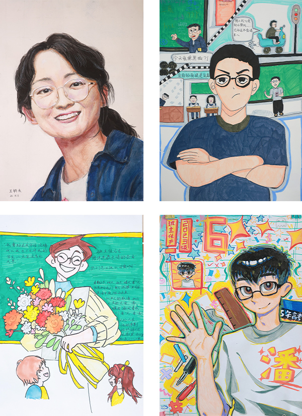 “我心目中的班主任”肖像画创作成为师生情感对话的开篇。学生们将班主任的日常瞬间转化为画纸上的鲜活形象。这些充满心意的画作被收录进“暖心礼盒”,与感恩卡、手写信件共同构成学生献给班主任的真挚心意。