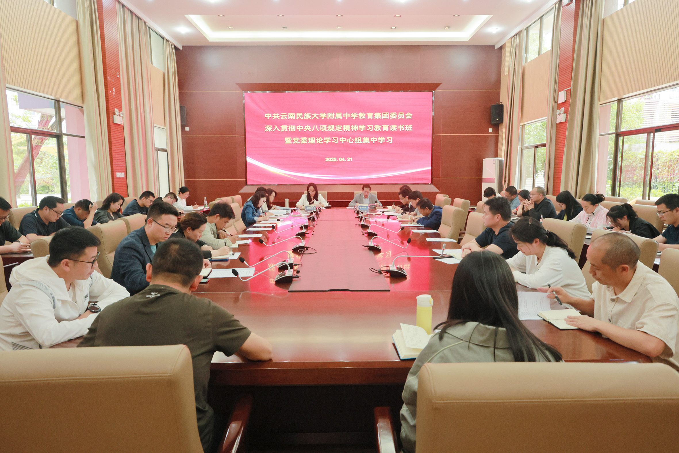 4月21日至22日下午,云南民族大学附属中学教育集团召开深入贯彻中央八项规定精神学习教育读书班暨党委...